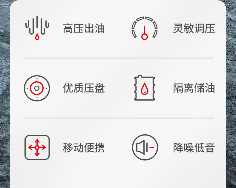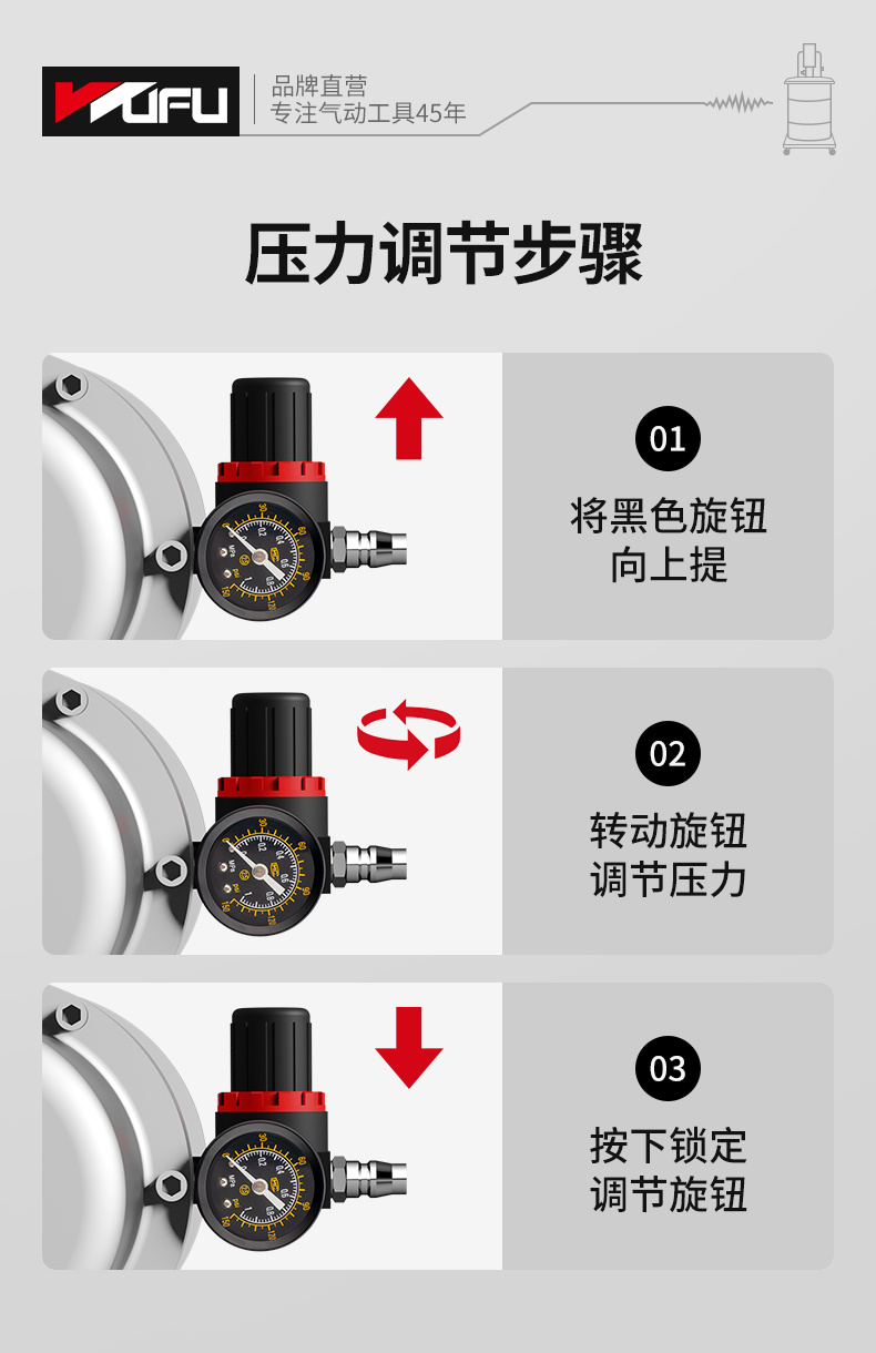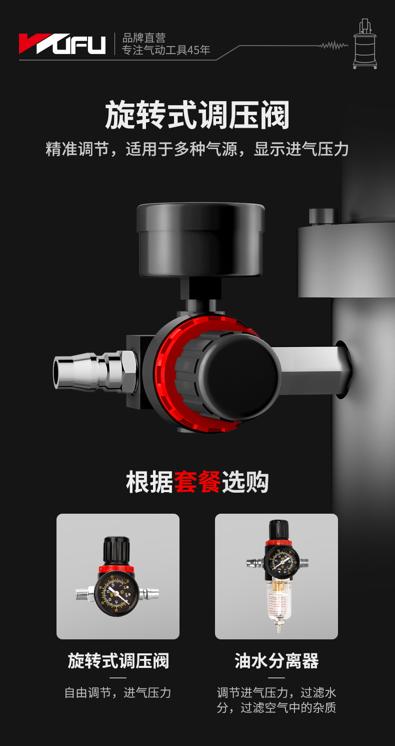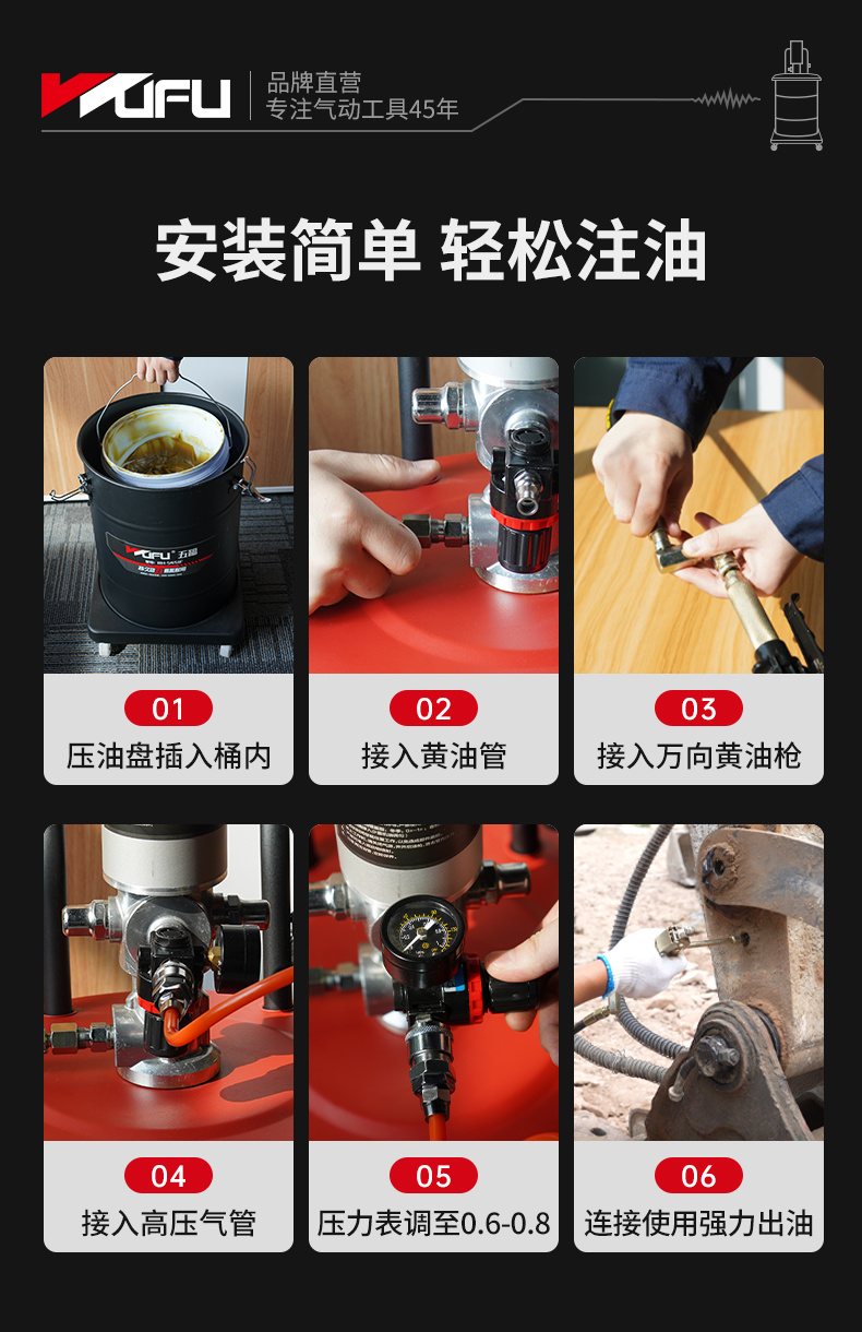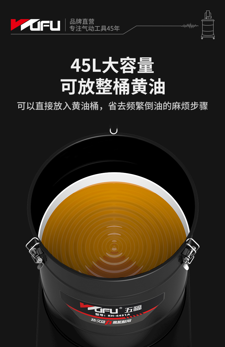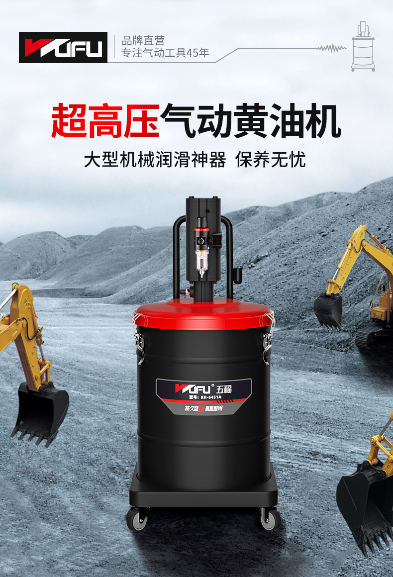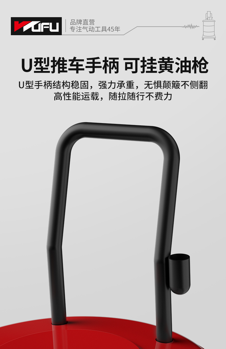高压强劲有力,高效快速出油,优质压盘,紧贴桶壁不漏油,移动便捷,可放整桶黄油使用,适用于工程机械、农用设备、机床加注、货运卡车润滑。